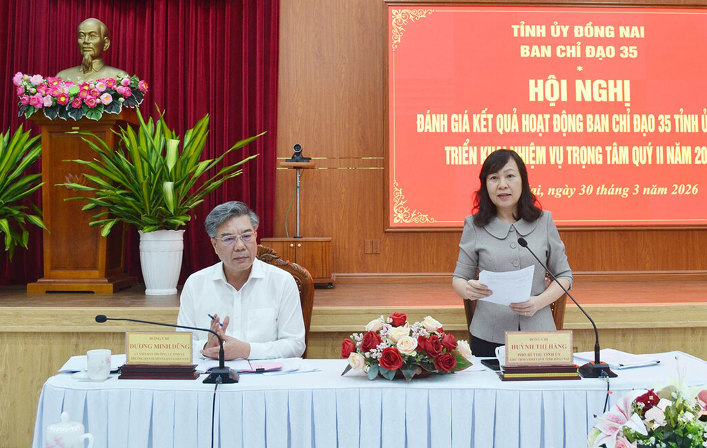 Ngày 30/3, Ban Chỉ đạo 35 Tỉnh ủy Đồng Nai tổ chức Hội nghị đánh giá kết quả hoạt động của Ban Chỉ đạo trong quý I và triển khai nhiệm vụ trọng tâm quý II năm 2026.