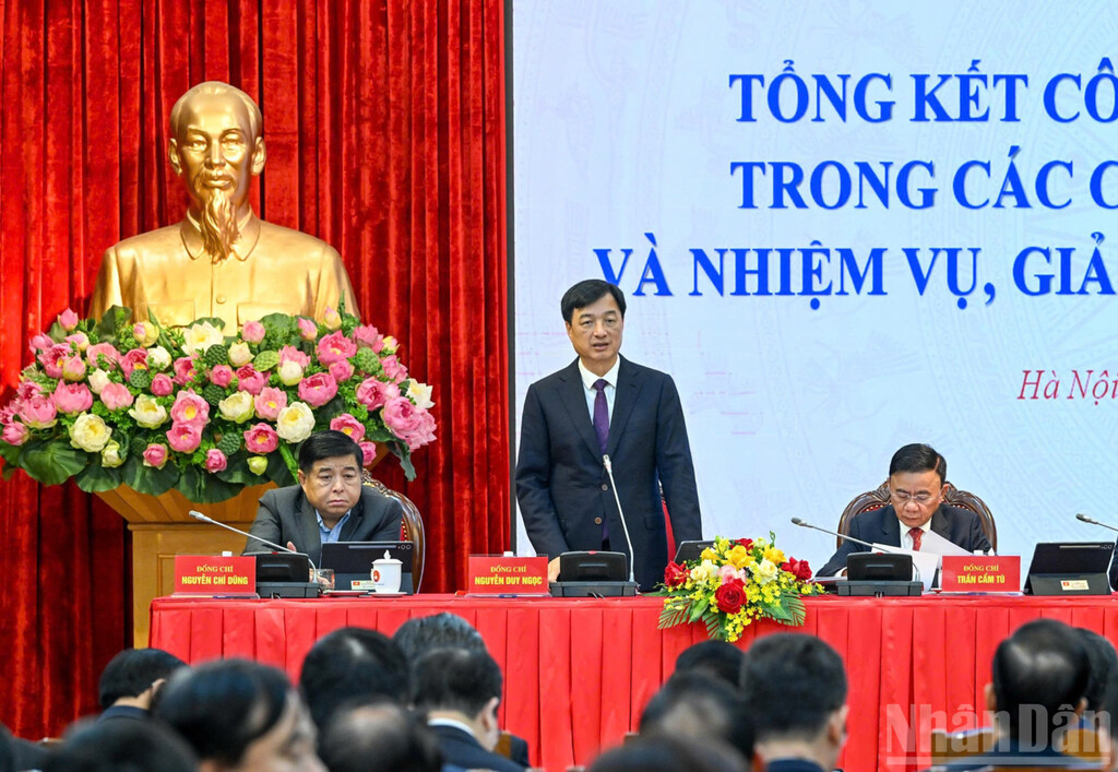 Đồng chí Nguyễn Duy Ngọc, Ủy viên Bộ Chính trị, Bí thư Thành ủy Hà Nội, Phó Trưởng ban Chỉ đạo, điều hành Hội nghị. Dự Hội nghị có các đồng chí Bí thư Trung ương Đảng: Trịnh Văn Quyết, Trưởng Ban Tuyên giáo và Dân vận Trung ương; Trần Lưu Quang, Bí thư Thành ủy Thành phố Hồ Chí Minh; các đồng chí: Nguyễn Chí Dũng, Ủy viên Trung ương Đảng, Phó Thủ tướng Chính phủ; Phạm Gia Túc, Ủy viên Trung ương Đảng, Chánh Văn phòng Trung ương Đảng, Phó Trưởng Ban Thường trực Ban Chỉ đạo; các đồng chí Ủy viên Trung ương Đảng; lãnh đạo các ban, bộ, ngành, tỉnh ủy, thành ủy, đảng ủy trực thuộc Trung ương. Hội nghị được kết nối trực tuyến từ điểm cầu tại Văn phòng Trung ương Đảng tới 3.213 điểm cầu trong cả nước với hơn 40.900 đại biểu.