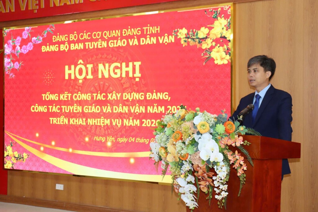 Phát biểu chỉ đạo Hội nghị, đồng chí Nguyễn Văn Chiến, Trưởng Ban Tuyên giáo và Dân vận Tỉnh ủy Hưng Yên nhấn mạnh, năm 2026 là năm có ý nghĩa quan trọng, đòi hỏi toàn thể cán bộ, đảng viên tiếp tục nâng cao tinh thần trách nhiệm, giữ vững kỷ luật, kỷ cương; chú trọng công tác xây dựng Đảng về chính trị, tư tưởng, đạo đức; đẩy mạnh đổi mới nội dung, phương thức công tác tuyên giáo và dân vận; tăng cường bám sát cơ sở, chủ động nắm bắt tình hình tư tưởng, dư luận xã hội; phát huy vai trò nêu gương của cán bộ, đảng viên, nhất là người đứng đầu, góp phần hoàn thành thắng lợi các nhiệm vụ chính trị được giao.
