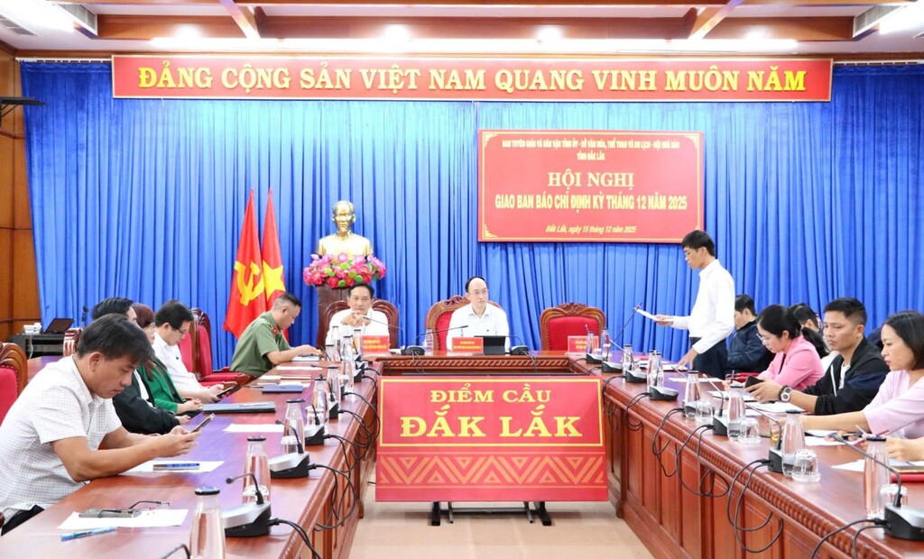 Chiều 15/12, Ban Tuyên giáo và Dân vận Tỉnh ủy Đắk Lắk phối hợp với Sở Văn hóa, Thể thao và Du lịch và Hội Nhà báo tỉnh tổ chức Hội nghị giao ban báo chí định kỳ tháng 12/2025.