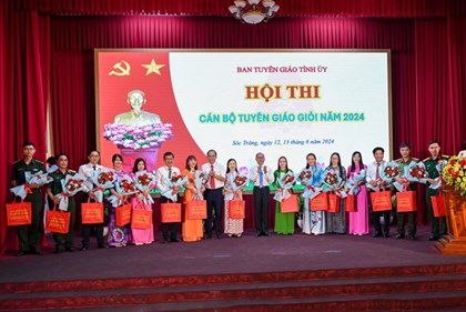 Nhân dịp này, các tập thể, cá nhân có thành tích xuất sắc tham gia Hội thi Cán bộ Tuyên giáo giỏi tỉnh Bình Dương lần thứ II - năm 2024, trao Giải Cuộc thi thiết kế sản phẩm tuyên truyền Nghị quyết Đại hội Đảng bộ tỉnh Bình Dương lần thứ XI, nhiệm kỳ 2020 – 2025 đã được biểu dương, khen thưởng. Ban Tuyên giáo tỉnh ủy Bình Dương trao Kỷ niệm chương Vì sự nghiệp Tuyên giáo của Ban Tuyên giáo Trung ương cho 8 cá nhân, đây là sự ghi nhận đóng góp của cán bộ, công chức, viên chức tỉnh Bình Dương vào quá trình xây dựng và phát triển ngành Tuyên giáo của Đảng./.