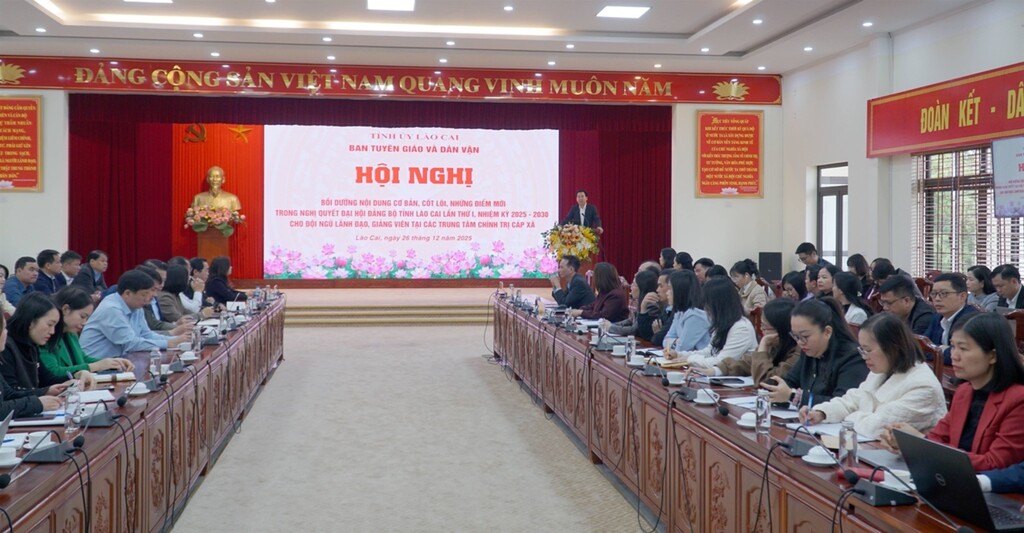 Ngày 26/12, Ban Tuyên giáo và Dân vận Tỉnh ủy Lào Cai tổ chức Hội nghị bồi dưỡng nội dung cơ bản, cốt lõi, những điểm mới trong Nghị quyết Đại hội Đảng bộ tỉnh Lào Cai lần thứ I, nhiệm kỳ 2025 - 2030 cho đội ngũ cán bộ, giảng viên tại các trung tâm chính trị cấp xã.