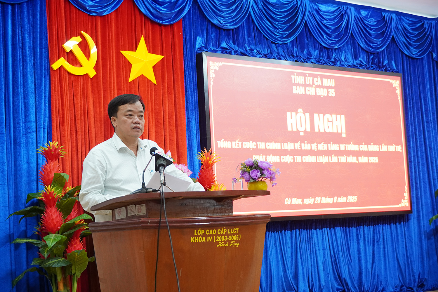 Ngày 28/8, Ban Chỉ đạo 35 Tỉnh ủy Cà Mau tổ chức Hội nghị tổng kết Cuộc thi về bảo vệ nền tảng tư tưởng của Đảng, đấu tranh, phản bác các quan điểm sai trái, thù địch lần thứ Tư, năm 2025.