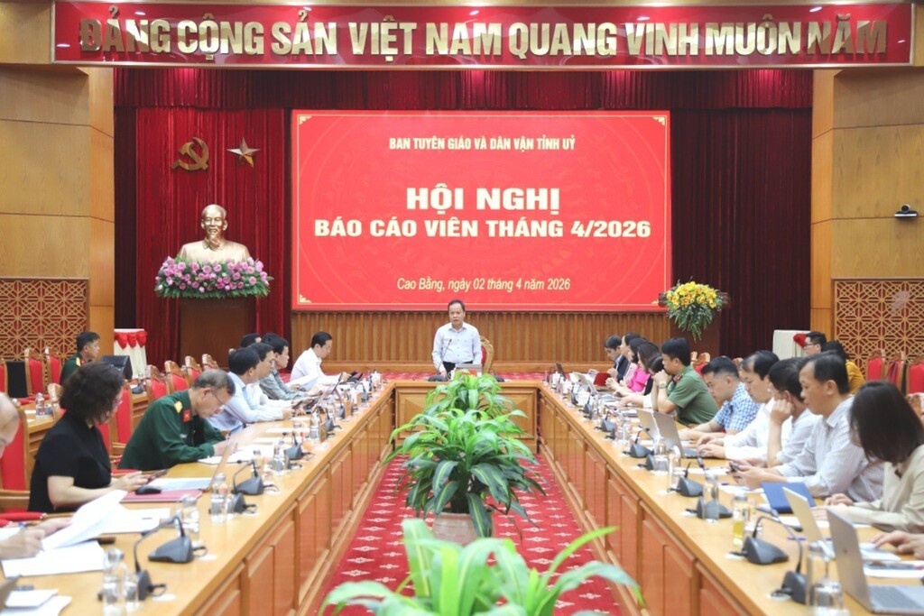 Ngày 2/4, Ban Tuyên giáo và Dân vận Tỉnh ủy Cao Bằng tổ chức Hội nghị Báo cáo viên cấp tỉnh tháng 4/2026 theo hình thức trực tiếp kết hợp trực tuyến tới 127 điểm cầu các đảng ủy trực thuộc Tỉnh ủy và các xã, phường trên địa bàn tỉnh với hơn 5.000 đại biểu tham dự.