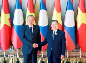 Tổng Bí thư Tô Lâm hội kiến Chủ tịch Quốc hội Lào Phomvihane, trao đổi các biện pháp tăng cường hợp tác Quốc hội, chính trị-an ninh, đồng thời khai trương sách điện tử 50 năm quan hệ Việt-Lào. -