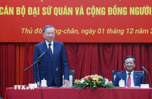 Tổng Bí thư Tô Lâm gặp gỡ cán bộ Đại sứ quán và cộng đồng người Việt tại Lào, biểu dương sự đoàn kết, giữ gìn bản sắc văn hóa và đóng góp quan trọng trong việc thúc đẩy quan hệ Việt Nam-Lào ngày càng bền chặt. -