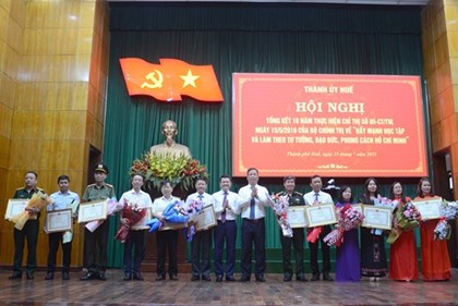 Ngày 25/7, Ban Thường vụ Thành ủy Huế tổ chức Hội nghị tổng kết 10 năm thực hiện Chỉ thị số 05-CT/TW, ngày 15/5/2016 của Bộ Chính trị khóa XII về “Đẩy mạnh học tập và làm theo tư tưởng, đạo đức, phong cách Hồ Chí Minh”; khen thưởng các điển hình tiêu biểu trong “Học tập và làm theo tư tưởng, đạo đức, phong cách Hồ Chí Minh” giai đoạn 2016 - 2025. -