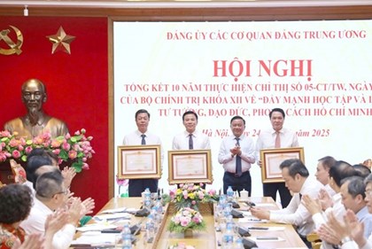 Chiều 24/7, tại Hà Nội, Đảng ủy các cơ quan Đảng Trung ương tổ chức Hội nghị tổng kết 10 năm thực hiện Chỉ thị số 05-CT/TW, ngày 15/5/2016 của Bộ Chính trị khóa XII về “Đẩy mạnh học tập và làm theo tư tưởng, đạo đức, phong cách Hồ Chí Minh”. -