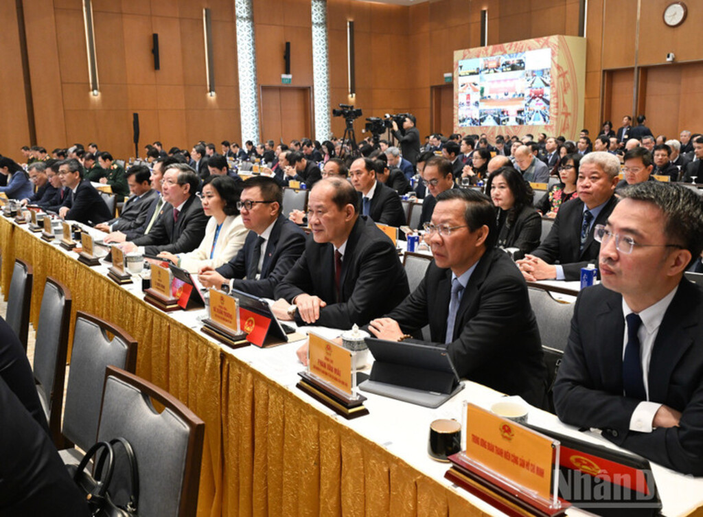 Cùng dự tại điểm cầu Trụ sở Chính phủ có các đồng chí: Chủ tịch nước Lương Cường, Thủ tướng Chính phủ Phạm Minh Chính, Chủ tịch Quốc hội Trần Thanh Mẫn, Thường trực Ban Bí thư Trần Cẩm Tú; các đồng chí Ủy viên Bộ Chính trị, Bí thư Trung ương Đảng; các đồng chí lãnh đạo Đảng, Nhà nước, Mặt trận Tổ quốc Việt Nam cùng lãnh đạo các ban, bộ, ngành, cơ quan Trung ương và địa phương. Thủ tướng Chính phủ, các Phó Thủ tướng Chính phủ chủ trì hội nghị.