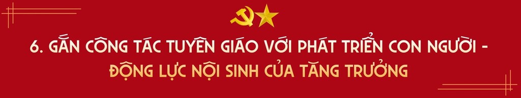 Mục tiêu cuối cùng của phát triển là con người. Vì vậy, công tác tuyên giáo phải gắn chặt với các lĩnh vực giáo dục-đào tạo, y tế, khoa học công nghệ. Phải hình thành trong xã hội tinh thần học tập suốt đời; tôn trọng tri thức; khuyến khích sáng tạo. Một xã hội học tập, một nền kinh tế tri thức chính là nền tảng để duy trì tăng trưởng cao và bền vững.