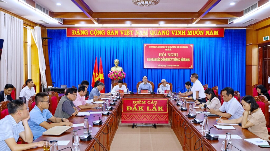 Chiều 12/3, Ban Tuyên giáo và Dân vận Tỉnh ủy phối hợp với Sở Văn hóa, Thể thao và Du lịch, Hội Nhà báo tỉnh Đắk Lắk tổ chức Hội nghị Giao ban báo chí định kỳ tháng 3/2026.