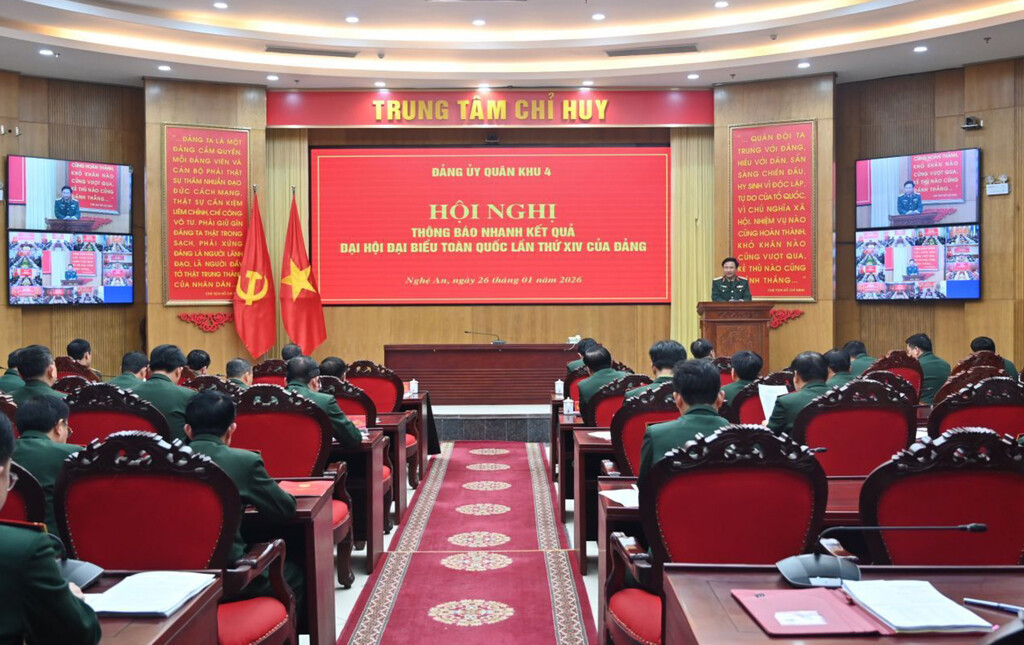 Ngày 26/01, Đảng ủy Quân khu 4 thông báo nhanh kết quả Đại hội đại biểu toàn quốc lần thứ XIV của Đảng.