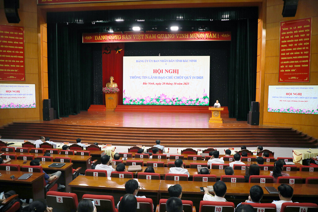 Ngày 20/10, Đảng ủy UBND tỉnh Bắc Ninh tổ chức Hội nghị thông tin lãnh đạo chủ chốt quý IV năm 2025 cho hơn 600 đại biểu là lãnh đạo các sở, ban, ngành, các chi, đảng bộ cơ sở trực thuộc Đảng ủy UBND tỉnh.