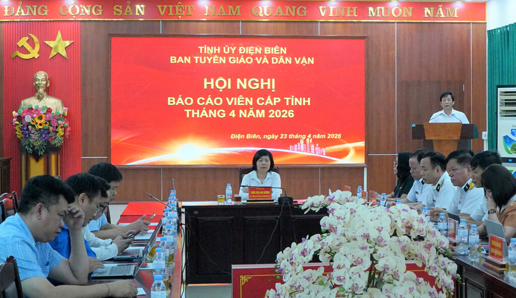 Ngày 23/4, Ban Tuyên giáo và Dân vận Tỉnh ủy Điện Biên tổ chức Hội nghị Báo cáo viên cấp tỉnh tháng 4/2026 bằng hình thức trực tiếp kết hợp trực tuyến tới 30 điểm cầu tại các sở, ngành, đơn vị, xã, phường với 1.293 đại biểu tham dự.