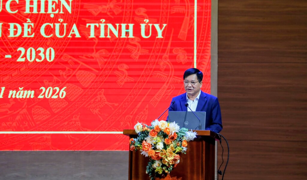 Tại Hội nghị, các đại biểu được quán triệt 10 nghị quyết của Tỉnh ủy và Ban Thường vụ Tỉnh ủy. Trong đó có Nghị quyết số 04-NQ/TU, ngày 5/12/2025 của Ban Chấp hành Đảng bộ tỉnh về mục tiêu, nhiệm vụ phát triển kinh tế - xã hội bảo đảm quốc phòng - an ninh và xây dựng hệ thống chính trị năm 2026; Nghị quyết số 05-NQ/TU, ngày 24/12/2025 của Ban Thường vụ Tỉnh ủy về tăng cường sự lãnh đạo của các cấp ủy đảng đối với công tác phòng, chống, kiểm soát ma túy và phấn đấu tỉnh không ma túy đến năm 2030; Nghị quyết 07-NQ/TU, ngày 31/12/2025 của Ban Chấp hành Đảng bộ tỉnh về nâng cao năng lực lãnh đạo, sức chiến đấu của tổ chức cơ sở đảng, góp phần củng cố hệ thống chính trị ở cơ sở, giai đoạn 2026 – 2030; Nghị quyết số 08-NQ/TU, ngày 31/12/2025 của Ban Chấp hành Đảng bộ tỉnh về đổi mới, nâng cao hiệu lực, hiệu quả công tác kiểm tra, giám sát và kỷ luật của Đảng trong tình hình mới; Nghị quyết số 09-NQ/TU, ngày 31/12/2025 của Ban Chấp hành Đảng bộ tỉnh về tiếp tục đổi mới, nâng cao chất lượng công tác nội chính, phòng, chống tham nhũng, lãng phí, tiêu cực và cải cách tư pháp trong tình hình mới; Nghị quyết số 10-NQ/TU, ngày 31/12/2025 của Ban Chấp hành Đảng bộ tỉnh về nhiệm vụ quốc phòng - an ninh giai đoạn 2026 - 2030...