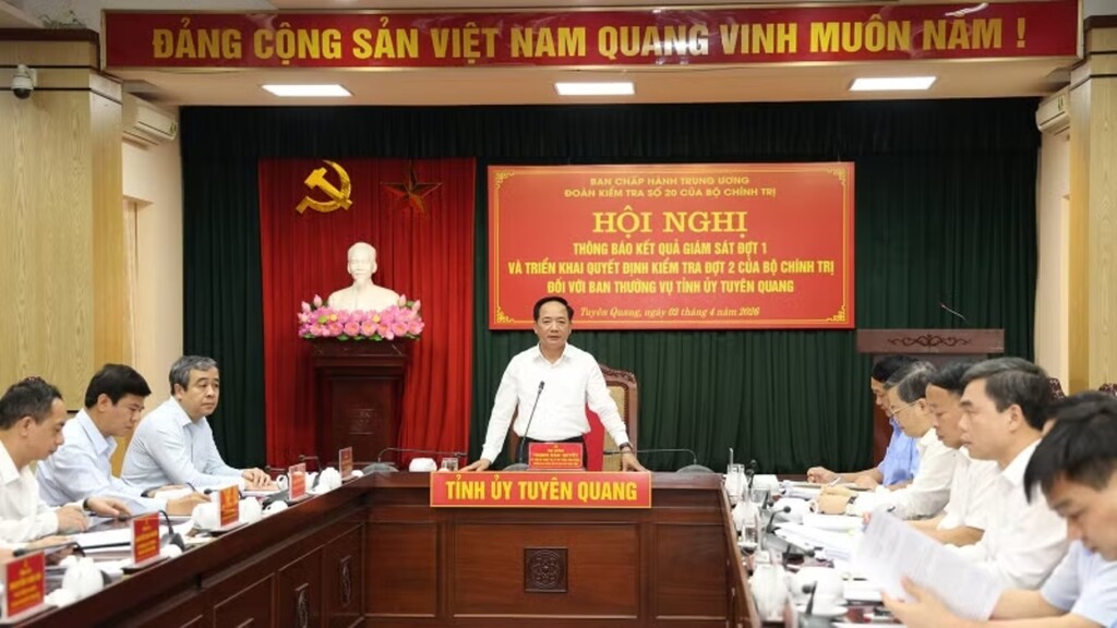 Chiều 2/4, Đoàn kiểm tra số 20 của Bộ Chính trị đã làm việc với Ban Thường vụ Tỉnh ủy Tuyên Quang, thông báo kết quả kiểm tra, giám sát đợt 1 và triển khai kế hoạch kiểm tra, giám sát đợt 2. Đồng chí Trịnh Văn Quyết, Ủy viên Bộ Chính trị, Bí thư Trung ương Đảng, Trưởng Ban Tuyên giáo và Dân vận Trung ương, Trưởng Đoàn kiểm tra dự và chủ trì Hội nghị.