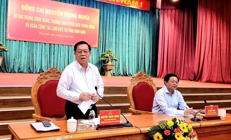 Phát biểu tại buổi làm việc, đồng chí Nguyễn Trọng Nghĩa, Bí thư Trung ương Đảng, Trưởng Ban Tuyên giáo Trung ương ghi nhận và đánh giá cao những kết quả mà Đảng bộ tỉnh Bình Định đã đạt được trong thời gian qua. Những kết quả đạt được đó là cơ sở, động lực để tiếp tục thúc đẩy, đưa Bình Định phát triển mạnh mẽ hơn trong thời gian tới.