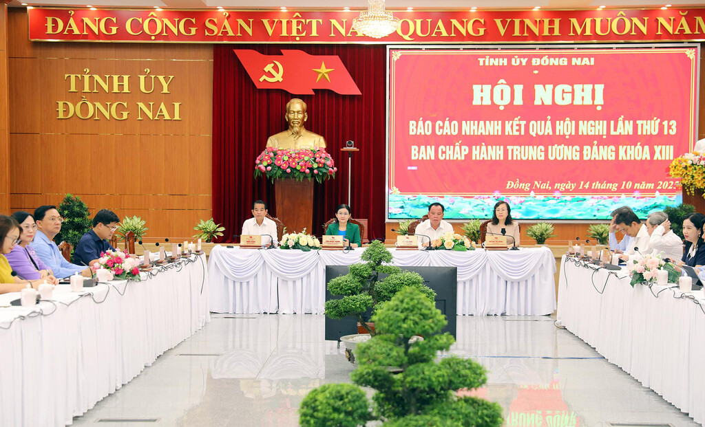 Ngày 14/10, Tỉnh ủy Đồng Nai tổ chức Hội nghị báo cáo nhanh kết quả Hội nghị lần thứ 13 Ban Chấp hành Trung ương Đảng khóa XIII. Dự Hội nghị có đại diện lãnh đạo các ban Đảng Trung ương; các đồng chí Ủy viên Ban Thường vụ Tỉnh ủy, Ủy viên Ban Chấp hành Đảng bộ tỉnh; lãnh đạo chủ chốt các cơ quan, đơn vị cấp tỉnh, cấp xã.