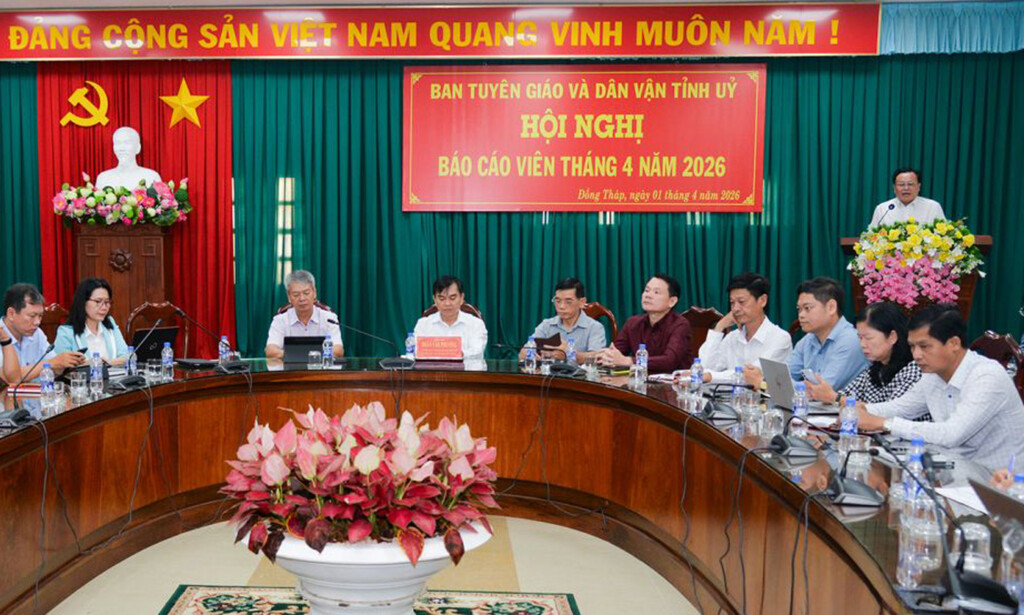 Ngày 1/4, Ban Tuyên giáo và Dân vận Tỉnh ủy Đồng Tháp tổ chức Hội nghị Báo cáo viên cấp tỉnh tháng 4/2026. Dự Hội nghị có các báo cáo viên Trung ương đang công tác trên địa bàn tỉnh, báo cáo viên cấp tỉnh cùng đại diện các cơ quan, đơn vị liên quan.