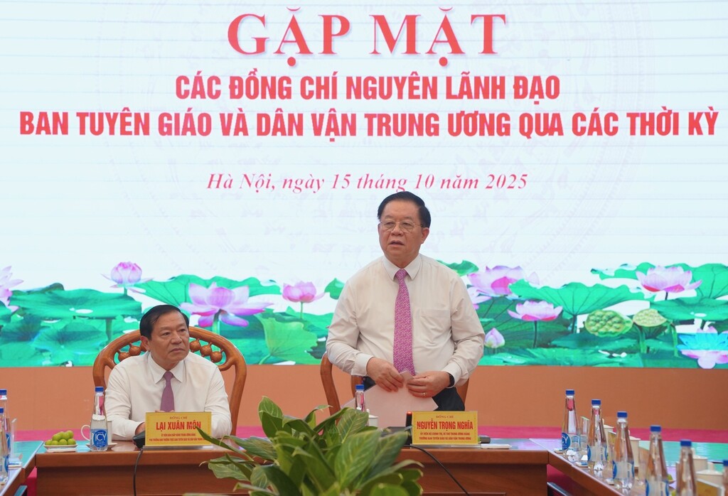 Phát biểu tại buổi gặp mặt, đồng chí Nguyễn Trọng Nghĩa, Ủy viên Bộ Chính trị, Bí thư Trung ương Đảng, Trưởng Ban Tuyên giáo và Dân vận Trung ương bày tỏ vui mừng, xúc động được đón các đồng chí nguyên lãnh đạo Ban Tuyên giáo và Dân vận Trung ương qua các thời kỳ, khẳng định đây là dịp tri ân, kế thừa và tiếp nối truyền thống 95 năm vẻ vang của ngành, chặng đường gắn liền với sự nghiệp cách mạng của Đảng và dân tộc.