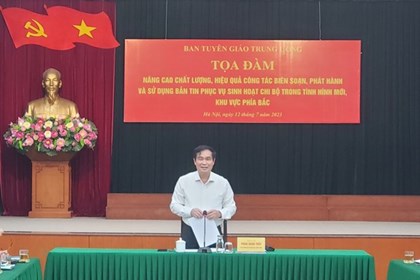 Ngày 14/7, tại Thành phố Hồ Chí Minh, Ban Tuyên giáo Trung ương tổ chức Tọa đàm “Nâng cao chất lượng, hiệu quả công tác biên soạn, phát hành và sử dụng bản tin phục vụ sinh hoạt chi bộ trong tình hình mới”, khu vực phía Nam.