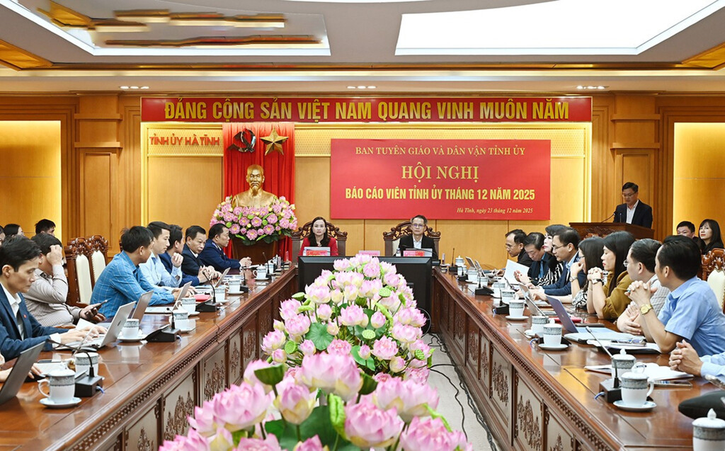 Ngày 23/12, Ban Tuyên giáo và Dân vận Tỉnh ủy Hà Tĩnh tổ chức Hội nghị Báo cáo viên Tỉnh ủy tháng 12/2025 để cung cấp thông tin cho đội ngũ báo cáo viên và định hướng công tác tuyên truyền thời gian tới.