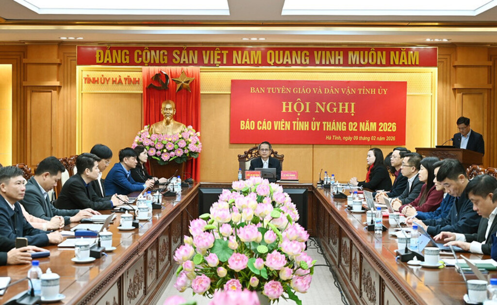 Ngày 9/2, Ban Tuyên giáo và Dân vận Tỉnh ủy Hà Tĩnh tổ chức Hội nghị Báo cáo viên Tỉnh ủy tháng 2/2026 bằng hình thức trực tiếp kết hợp với trực tuyến, kết nối tới 69 điểm cầu xã, phường, 2 điểm cầu đảng ủy trực thuộc với sự tham gia của hơn 5.600 đại biểu.