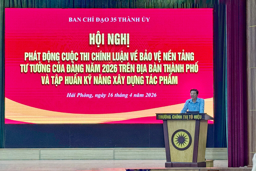 Ngày 16/4, Ban Chỉ đạo 35 Thành ủy Hải Phòng tổ chức Hội nghị phát động Cuộc thi chính luận về bảo vệ nền tảng tư tưởng của Đảng năm 2026 trên địa bàn Thành phố và tập huấn kỹ năng xây dựng tác phẩm dự thi.