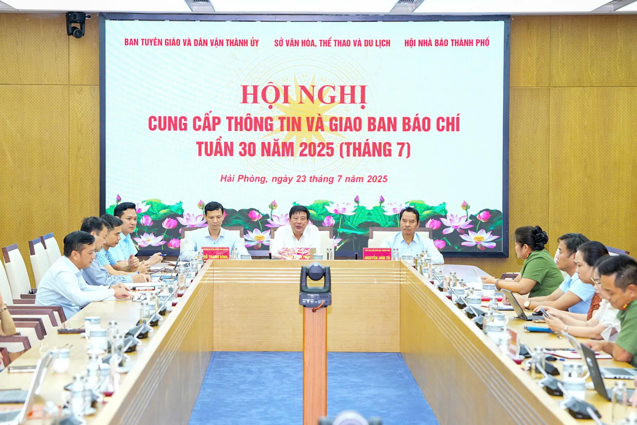 Chiều 23/7, Ban Tuyên giáo và Dân vận Thành ủy Hải Phòng phối hợp với Sở Văn hóa, Thể thao và Du lịch, Hội Nhà báo thành phố tổ chức Hội nghị cung cấp thông tin và giao ban báo chí tháng 7/2025.