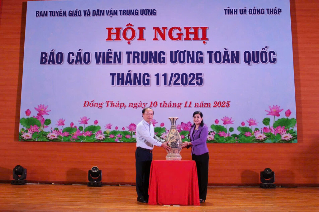 Ngày 10/11, tại tỉnh Đồng Tháp, Ban Tuyên giáo và Dân vận Trung ương chủ trì, phối hợp Tỉnh ủy Đồng Tháp tổ chức Hội nghị Báo cáo viên Trung ương toàn quốc tháng 11/2025. Đồng chí Phạm Tất Thắng, Ủy viên Trung ương Đảng, Phó Trưởng ban Tuyên giáo và Dân vận Trung ương chủ trì Hội nghị.
