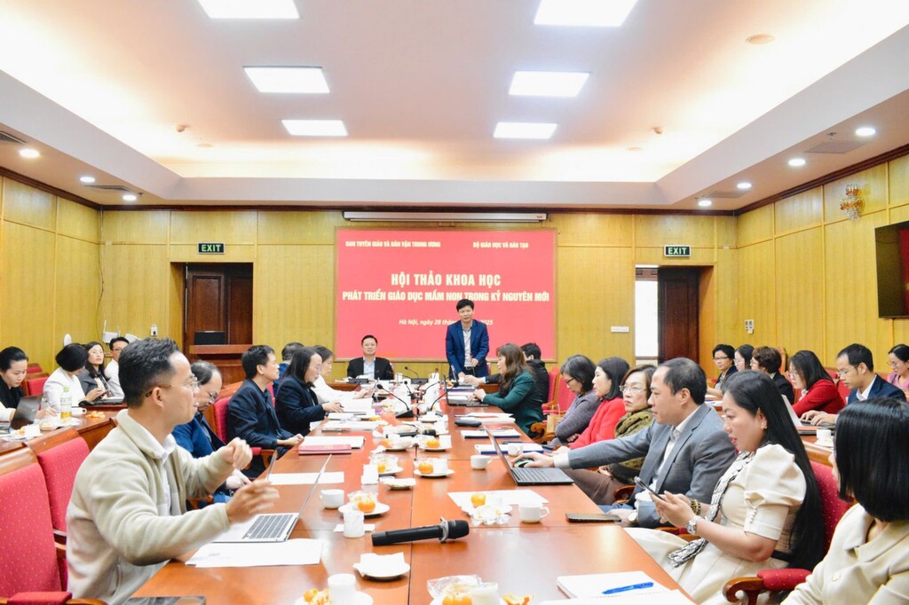 Kết luận Hội thảo, đồng chí Vũ Thanh Mai, Phó Trưởng ban Tuyên giáo và Dân vận Trung ương nhấn mạnh 6 nhiệm vụ, giải pháp trọng tâm phát triển giáo dục mầm non trong kỷ nguyên mới. Trước hết, cần quán triệt đầy đủ quan điểm, định hướng của Đảng tại Nghị quyết số 29-NQ/TW ngày 4/11/2013 của Hội nghị lần thứ 8, Ban Chấp hành Trung ương, khóa XI “Về đổi mới căn bản, toàn diện giáo dục và đào tạo, đáp ứng yêu cầu công nghiệp hóa, hiện đại hóa trong điều kiện kinh tế thị trường định hướng xã hội chủ nghĩa và hội nhập quốc tế”; Kết luận số 91-KL/TW, ngày 12/8/2024 của Bộ Chính trị về tiếp tục thực hiện Nghị quyết số 29-NQ/TW; Nghị quyết số 71-NQ/TW ngày 22/8/2025 của Bộ Chính trị về về đột phá phát triển giáo dục và đào tạo; trong đó giáo dục mầm non là một trong những lĩnh vực ưu tiên hàng đầu.