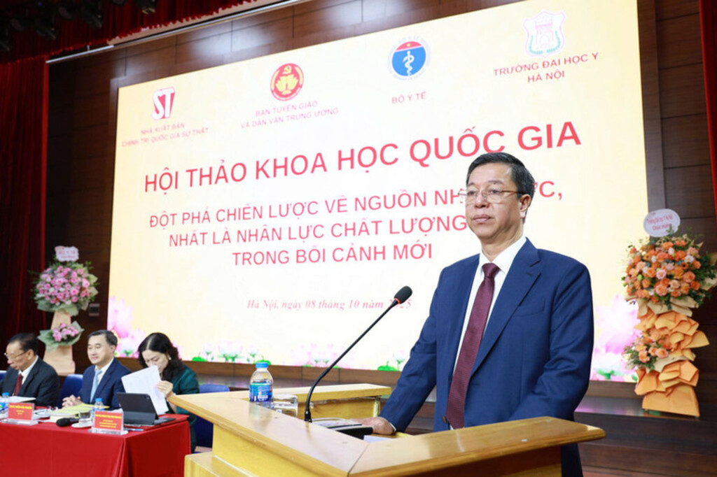 Nhằm góp phần làm rõ những vấn đề cốt lõi trong phát triển nhân lực phục vụ sự nghiệp xây dựng và bảo vệ Tổ quốc trong thời kỳ mới, đóng góp cho quá trình chuẩn bị Văn kiện Đại hội XIV của Đảng, ngày 8/10, Ban Tuyên giáo và Dân vận Trung ương phối hợp với Bộ Y tế, Nhà xuất bản Chính trị quốc gia Sự thật và Trường Đại học Y Hà Nội tổ chức Hội thảo khoa học quốc gia “Đột phá chiến lược về nguồn nhân lực, nhất là nhân lực chất lượng cao trong bối cảnh mới”.