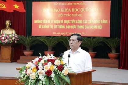 Triển khai thực hiện Nghị quyết Đại hội XIII của Đảng, theo chức năng, nhiệm vụ được giao, Ban Tuyên giáo Trung ương tổ chức Hội thảo quốc gia "Những vấn đề lý luận và thực tiễn công tác xây dựng Đảng về chính trị, tư tưởng, đạo đức trong giai đoạn mới". Đây là cuộc hội thảo có ý nghĩa đặc biệt quan trọng. Kết quả của hội thảo sẽ góp phần tổng kết công tác xây dựng Đảng về chính trị, tư tưởng, đạo đức qua 40 năm thực hiện đường lối đổi mới và tham gia xây dựng Văn kiện Đại hội lần thứ XIV của Đảng.