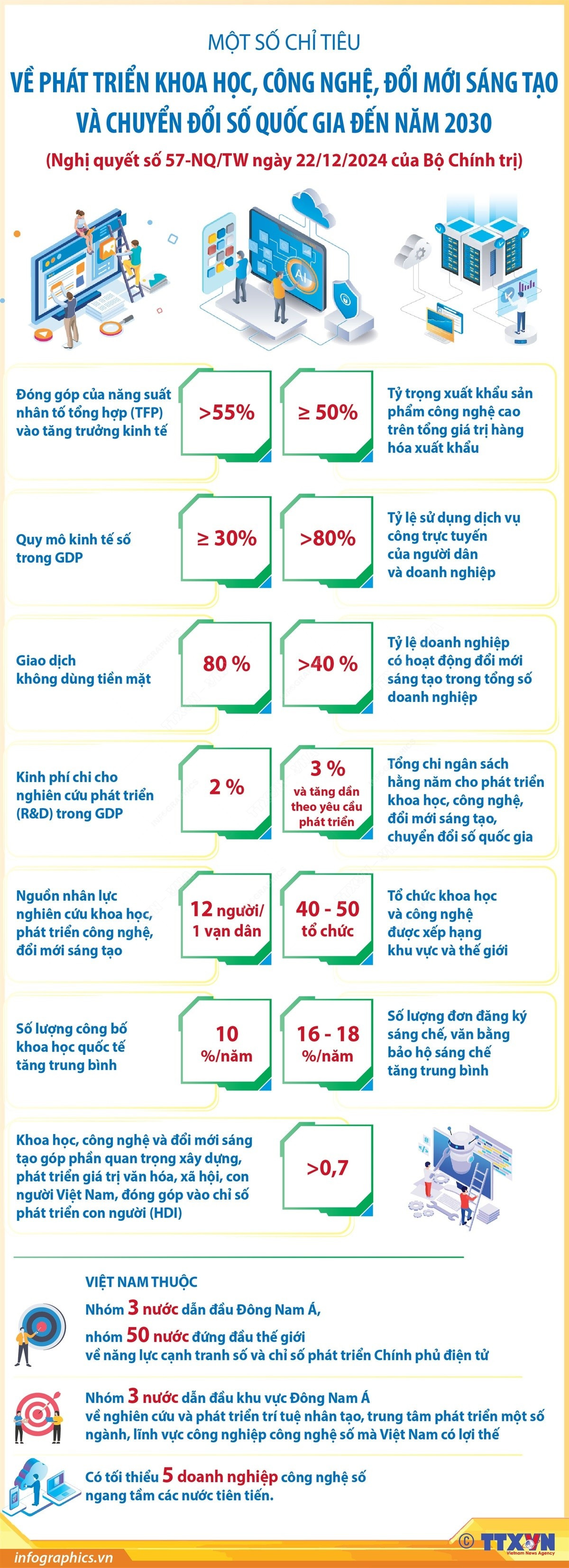 Infographic: Một số chỉ tiêu về đổi mới sáng tạo và chuyển đổi số quốc gia đến năm 2030