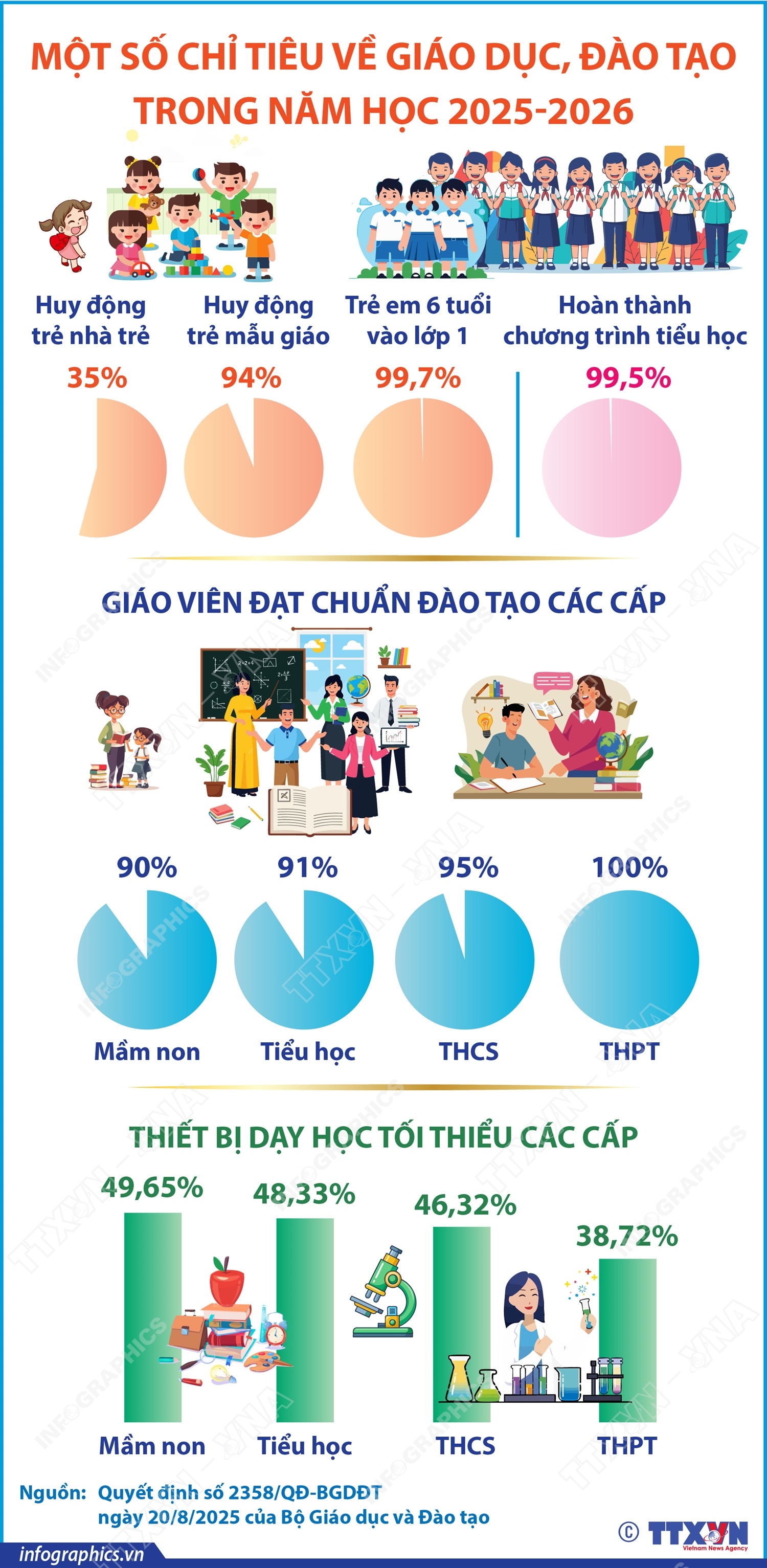 Infographic: Một số chỉ tiêu về giáo dục, đào tạo trong năm học 2025-2026