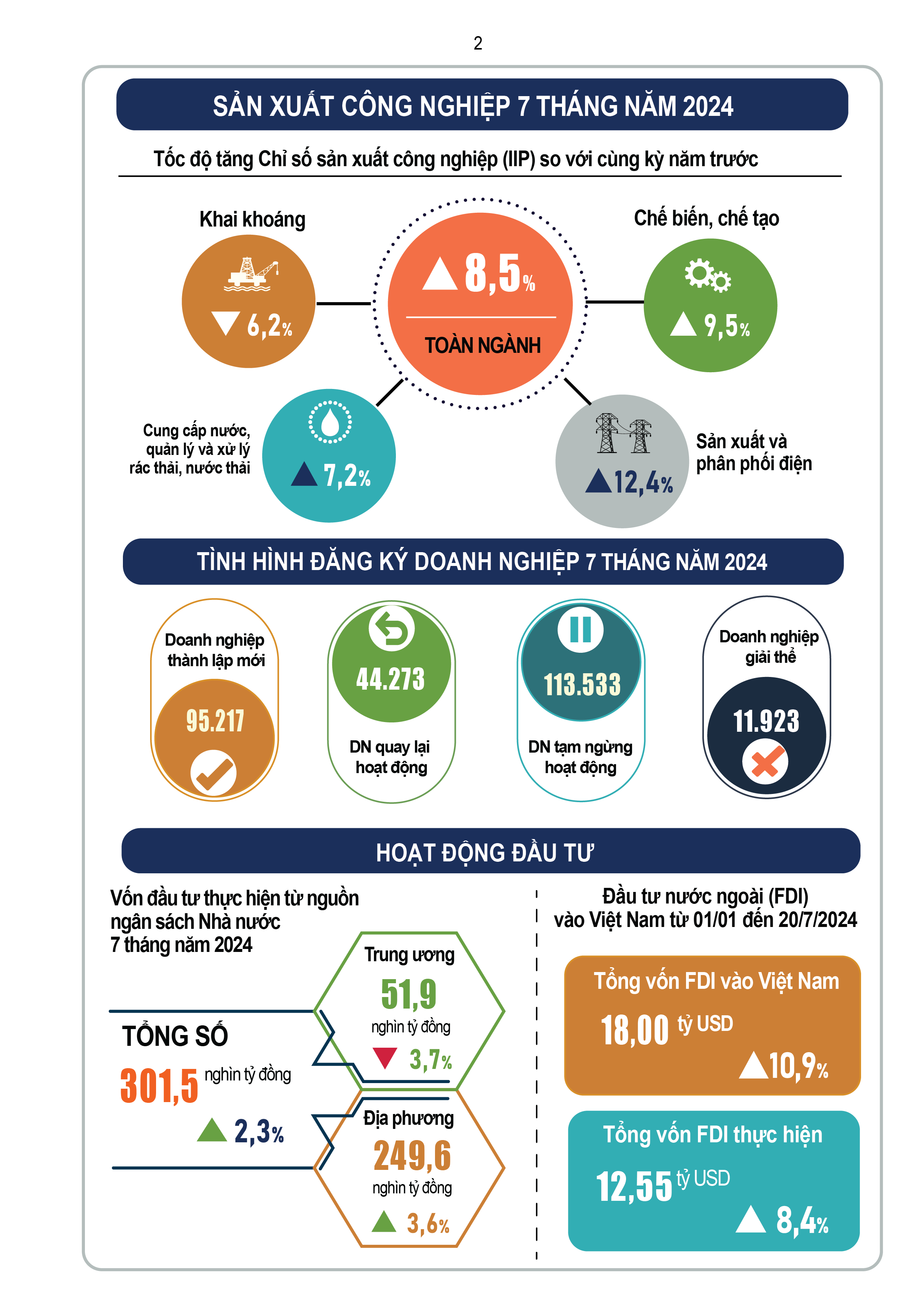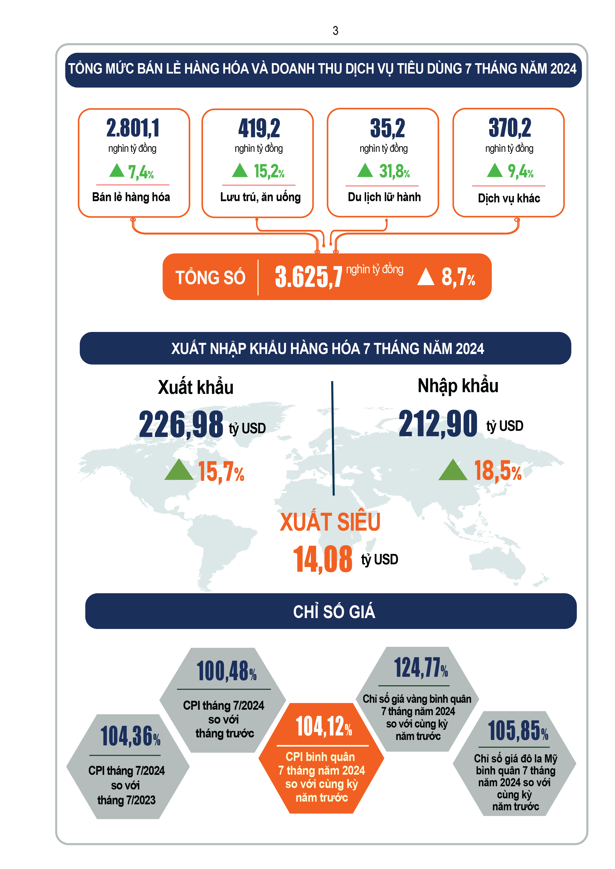 Infographic: Tình hình kinh tế - xã hội tháng bảy và 7 tháng năm 2024