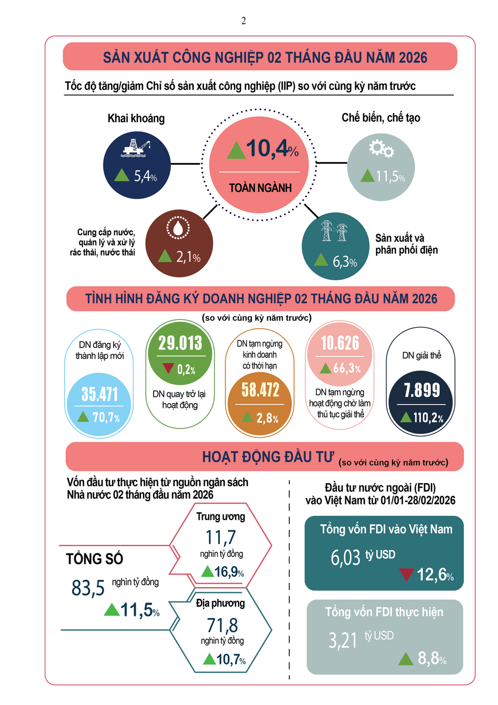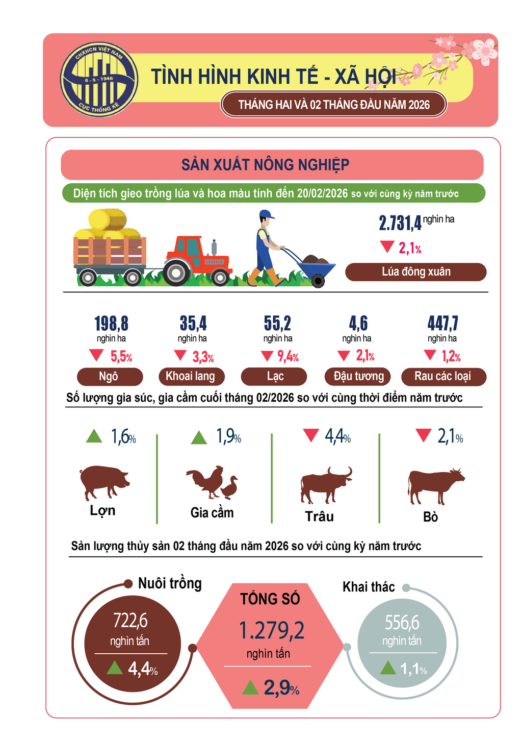Infographic: Tình hình kinh tế – xã hội tháng Hai và 02 tháng đầu năm 2026