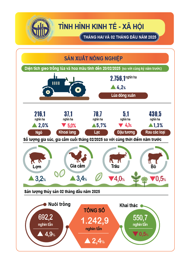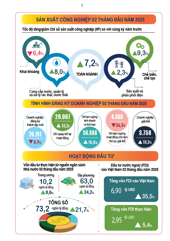 Infographic: Tình hình kinh tế – xã hội tháng Hai và 2 tháng đầu năm 2025