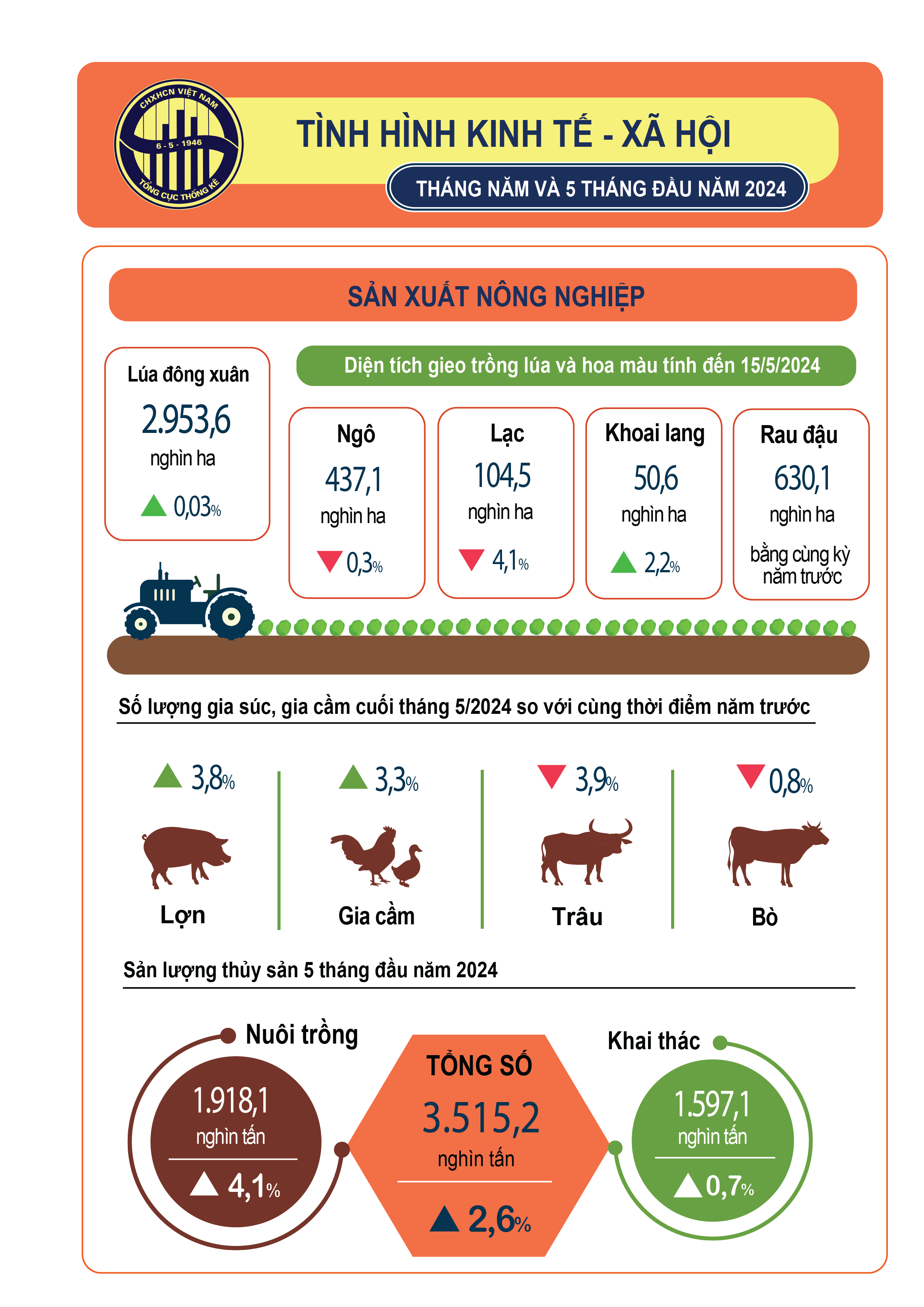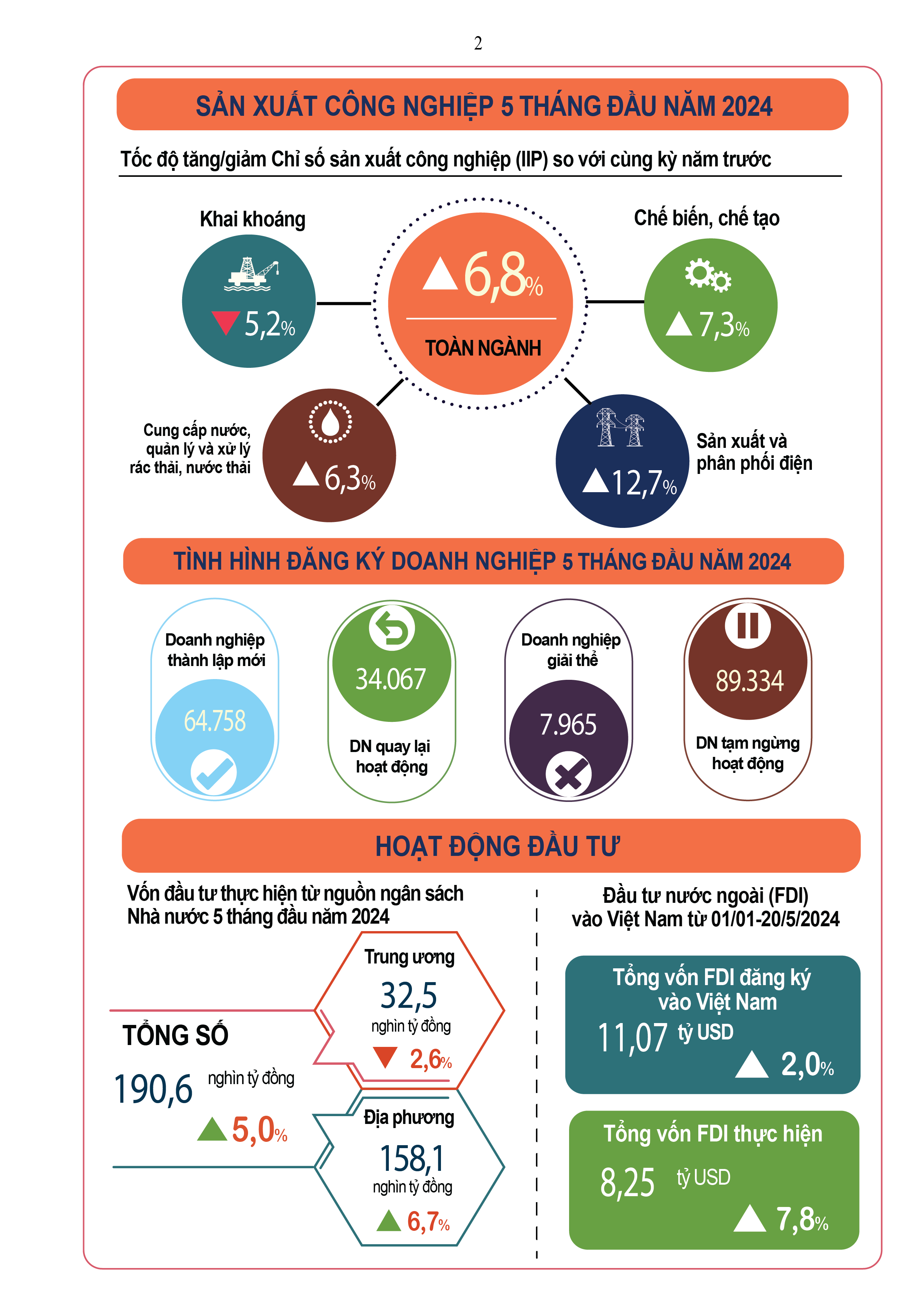 Infographic: Tình hình kinh tế – xã hội tháng Năm và 5 tháng đầu năm 2024