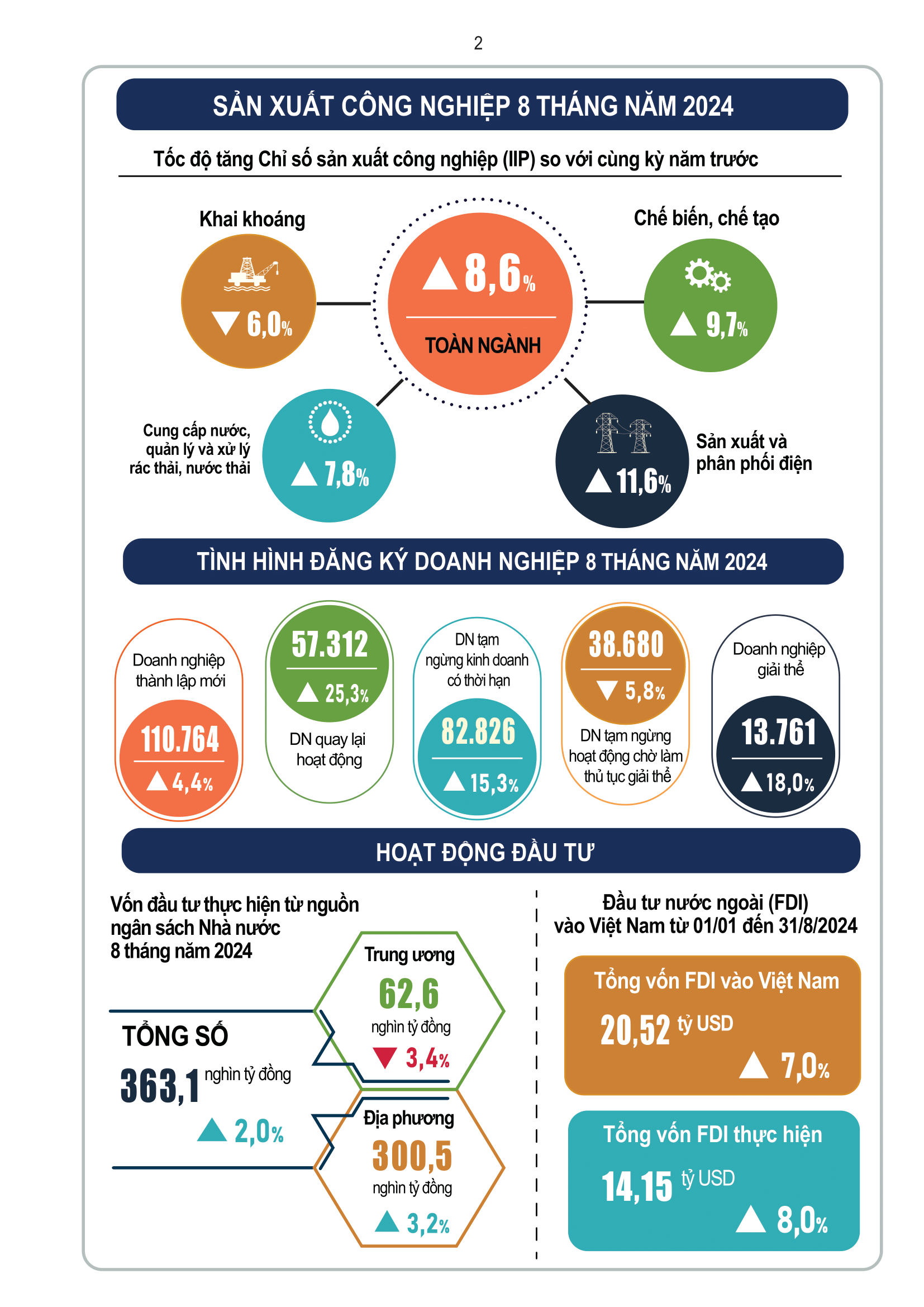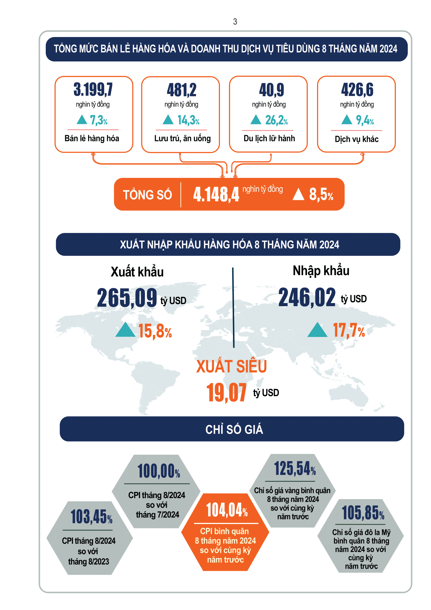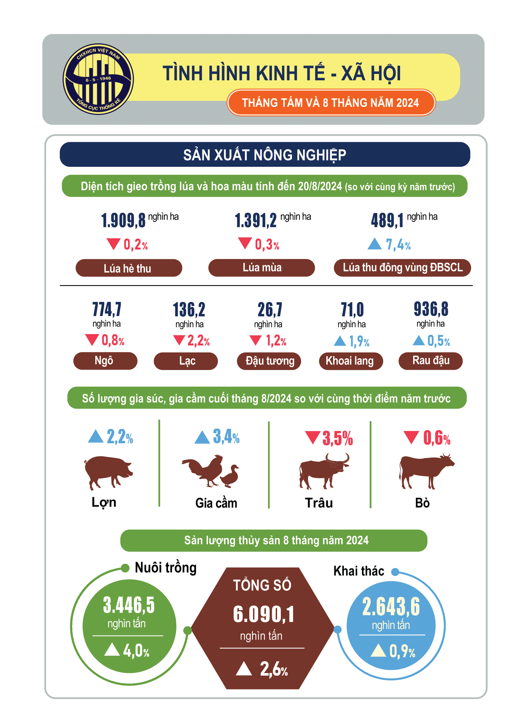 Infographic: Tình hình kinh tế - xã hội tháng Tám và 8 tháng năm 2024