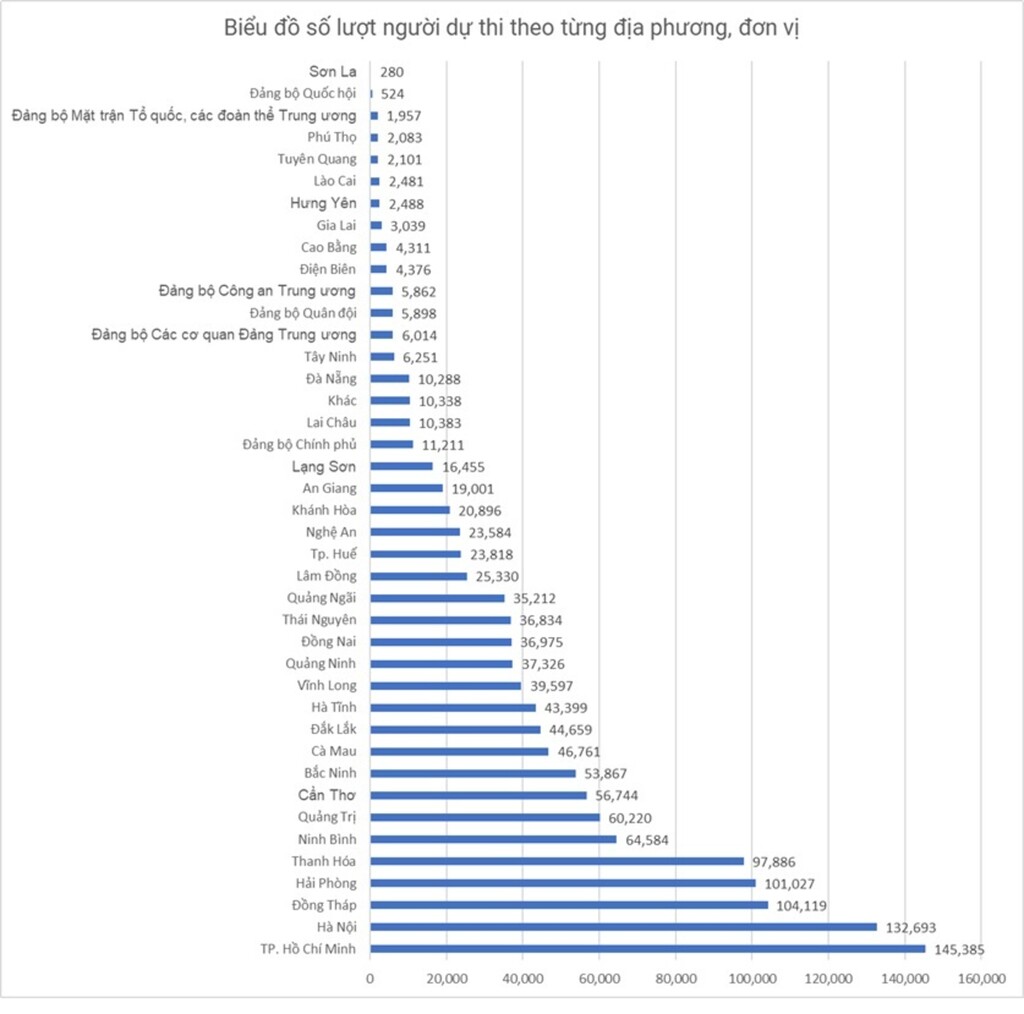 - Số lượt người dự thi trả lời đúng 10 câu hỏi trắc nghiệm: 145.271 lượt.