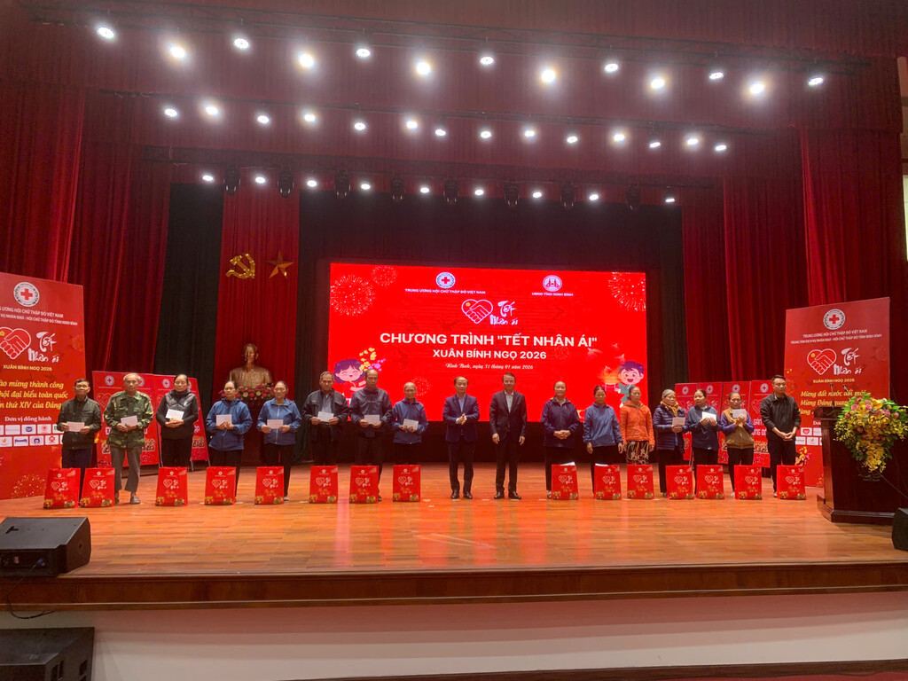 Ninh Bình là một trong 10 tỉnh, thành phố được lựa chọn tổ chức chương trình “Tết Nhân ái” quy mô cấp Trung ương. Xuân Bính Ngọ năm 2026, Trung ương Hội Chữ thập đỏ Việt Nam triển khai Phong trào “Tết Nhân ái” trên phạm vi toàn quốc với mục tiêu toàn hệ thống Hội vận động và trao tặng 1,5 triệu suất quà Tết, trị giá tối thiểu 500.000 đồng mỗi suất, tổng giá trị nguồn lực đạt ít nhất 750 tỷ đồng, hướng tới người nghèo, người khuyết tật, trẻ em mồ côi, người cao tuổi cô đơn và các hộ dân chịu ảnh hưởng nặng nề bởi thiên tai./.