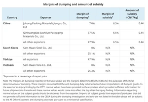 Với doanh nghiệp Việt Nam duy nhất tham gia vụ việc, Cơ quan dịch vụ biên giới Canada xác định không tồn tại hành vi bán phá giá đối với mặt hàng dây đai thép nên không bị áp thuế chống bán phá giá. -