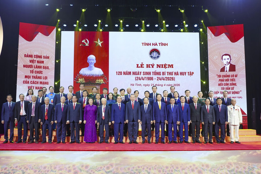 Ngày 21/4, tại Hà Tĩnh, Tỉnh ủy, Hội đồng nhân dân, Ủy ban nhân dân, Ủy ban Mặt trận Tổ quốc Việt Nam tỉnh Hà Tĩnh tổ chức trọng thể Lễ kỷ niệm 120 năm Ngày sinh Tổng Bí thư Hà Huy Tập (24/4/1906 - 24/4/2026). Tổng Bí thư, Chủ tịch nước Tô Lâm dự và phát biểu tại buổi lễ.