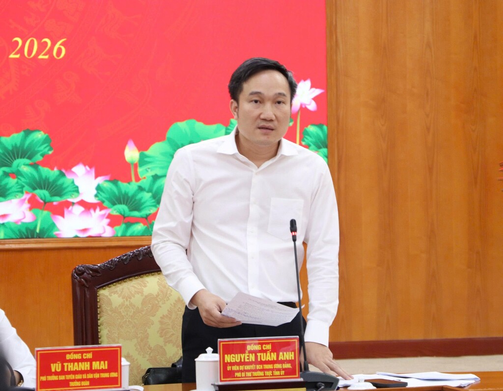 Các đồng chí: Nguyễn Tuấn Anh, Ủy viên dự khuyết Trung ương Đảng, Phó Bí thư Thường trực Tỉnh ủy Lai Châu; Vũ Thanh Mai, Phó Trưởng ban Tuyên giáo và Dân vận Trung ương đồng chủ trì buổi làm việc.