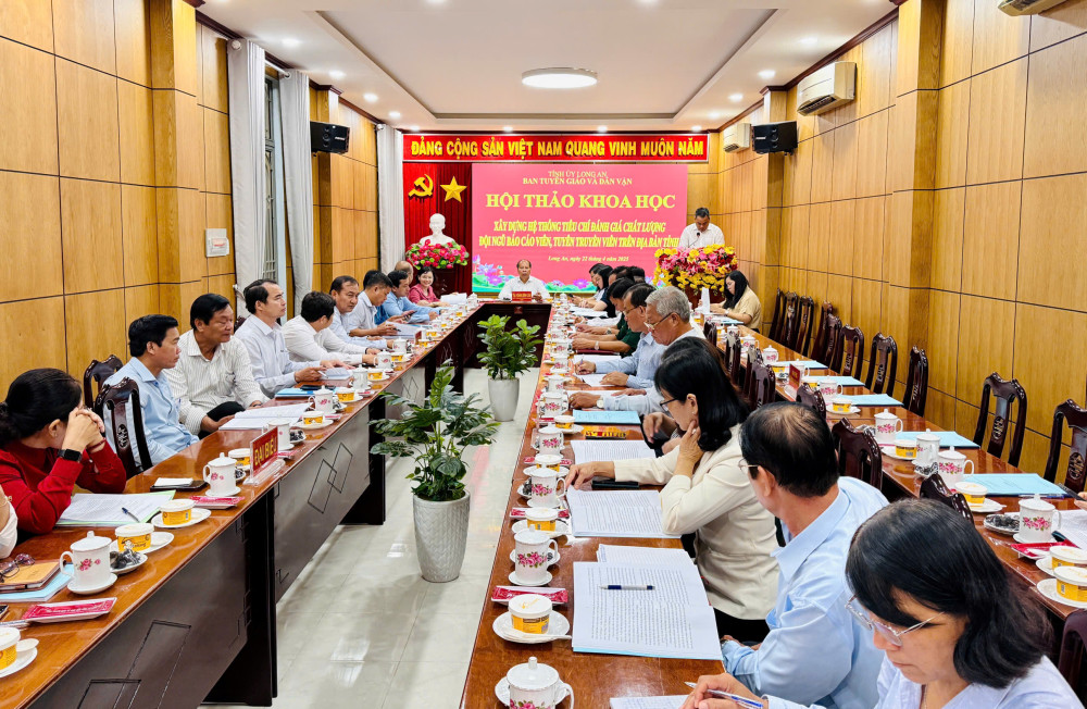 Ngày 22/4, Ban Tuyên giáo và Dân vận Tỉnh ủy Long An tổ chức Hội thảo khoa học Xây dựng hệ thống tiêu chí đánh giá chất lượng đội ngũ báo cáo viên, tuyên truyền viên trên địa bàn tỉnh.