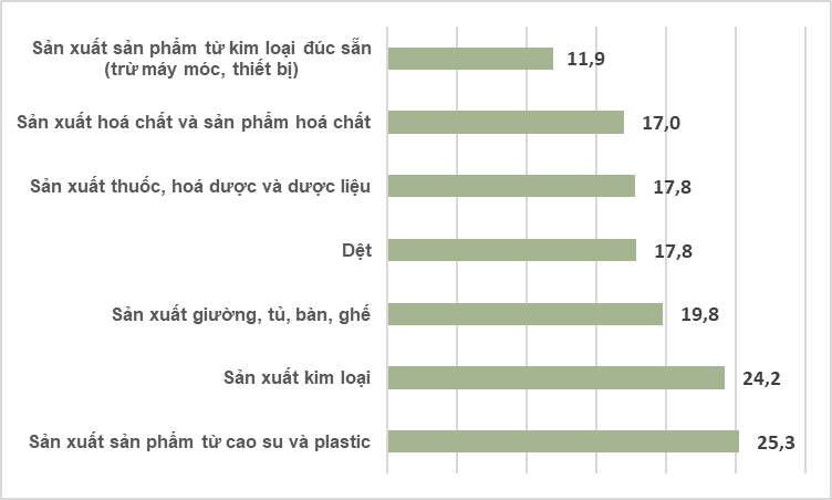 (3) Sản xuất công nghiệp các tháng trong năm 2023 diễn biến theo xu hướng tích cực (1), nhất là vào các tháng cuối năm. Chỉ số sản xuất công nghiệp quý IV/2023 ước tăng 5% so với cùng kỳ năm trước, là mức tăng cao nhất so với các quý trong năm. Trong đó, sản xuất sản phẩm từ cao su, plastic tăng 25,3%; sản xuất kim loại tăng 24,2%; sản xuất giường, tủ, bàn ghế tăng 19,8%; dệt và sản xuất thuốc, hóa dược và dược liệu cùng tăng 17,8%; sản xuất sản phẩm từ kim loại đúc sẵn (trừ máy móc, thiết bị) tăng 11,9%.
