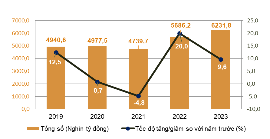Trong quý IV/2023, vốn đầu tư thực hiện toàn xã hội tăng 7,1% so với cùng kỳ năm trước (quý I tăng 3,6%; quý II tăng 5,6%; quý III tăng 7,5%). Tính chung cả năm 2023, vốn đầu tư thực hiện toàn xã hội ước đạt 3.423,5 nghìn tỷ đồng, tăng 6,2% so với cùng kỳ năm trước, trong đó vốn đầu tư từ ngân sách Nhà nước đạt 625,3 nghìn tỷ và tăng 21,2%.