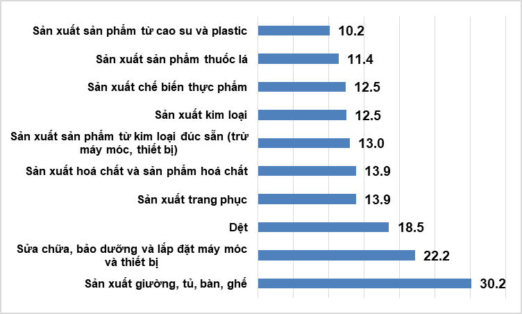 (3) Sản xuất công nghiệp tiếp tục khởi sắc hơn, chỉ số sản xuất công nghiệp tháng 9/2023 ước tăng 5,1% so với cùng kỳ năm trước[2]. Trong đó, chỉ số sản xuất của ngành sản xuất giường, tủ, bàn, ghế tăng 30,2%; dệt tăng 18,5%; sản xuất trang phục và sản xuất hóa chất, sản phẩm hóa chất cùng tăng 13,9%; sản xuất sản phẩm từ kim loại đúc sẵn tăng 13%; sản xuất kim loại và sản xuất chế biến thực phẩm cùng tăng 12,5%; sản xuất thuốc lá tăng 11,4%; sản xuất sản phẩm từ cao su, plastic tăng 10,2%.