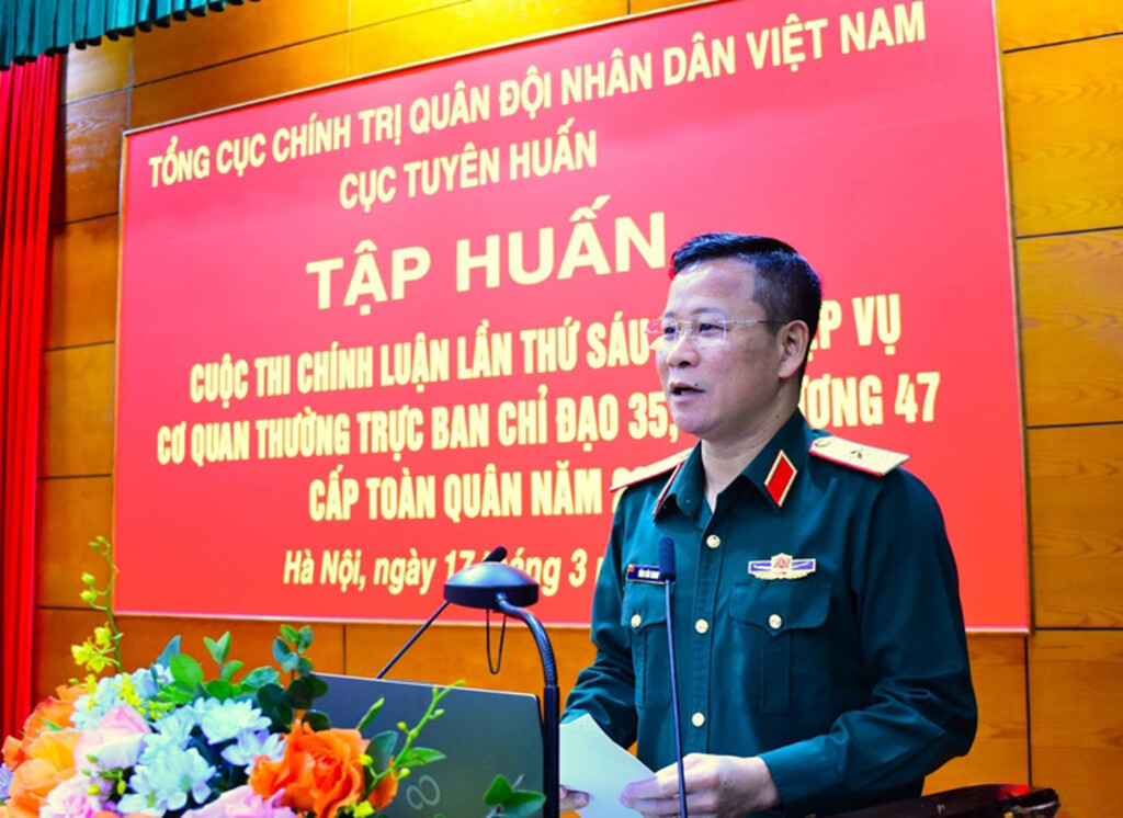 Ngày 17/3, Cục Tuyên huấn, Tổng cục Chính trị QĐND Việt Nam tổ chức Hội nghị tập huấn Cuộc thi chính luận lần thứ sáu và nghiệp vụ Cơ quan Thường trực Ban Chỉ đạo 35, Lực lượng 47 cấp toàn quân năm 2026. Hội nghị được kết nối trực tuyến tới 45 điểm cầu trong toàn quân với sự tham gia của hơn 3.000 đại biểu.